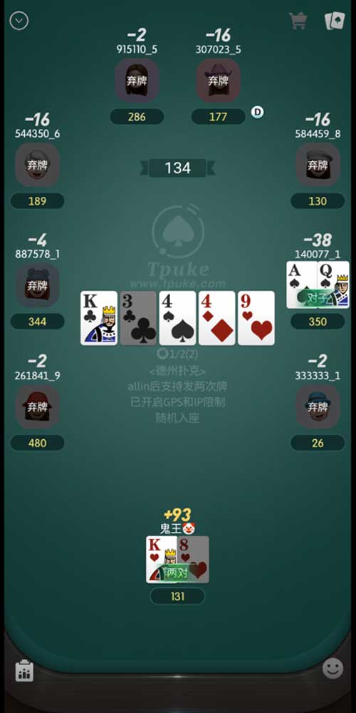 下注方式:玩家之间通过下注来争夺底池中的筹码。下注方式包括跟注、加注、盖牌放弃等。根据不同的比赛类型和规则,下注限制也会有所不同。