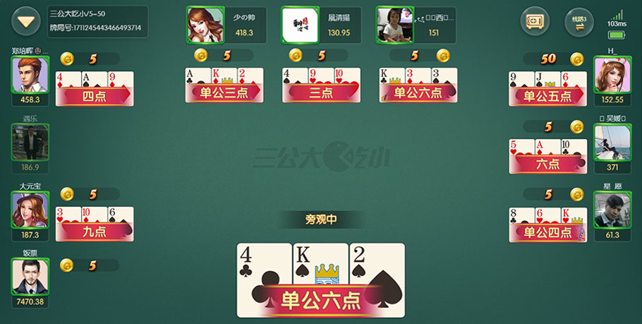 三公全暗游戏的对战过程充满了趣味性。每一轮出牌都是一个未知的挑战,玩家的心跳会随着牌局的进展而加速。当面对上家的高牌型而不得不 pass 时,那种焦急和无奈的心情,以及当自己成功用小牌战胜上家大牌型时的那种惊喜,都构成了游戏独特的趣味元素。