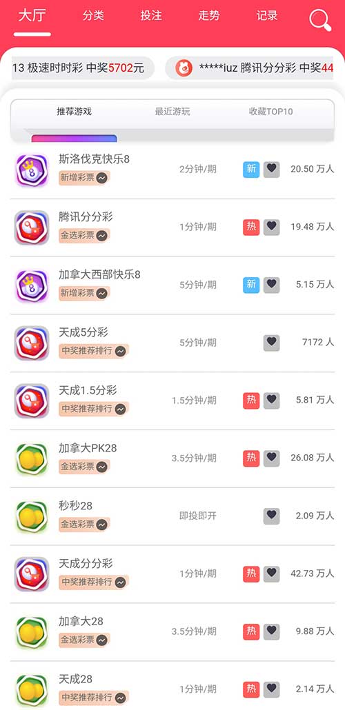 开奖频率:每天1440期,1分一期